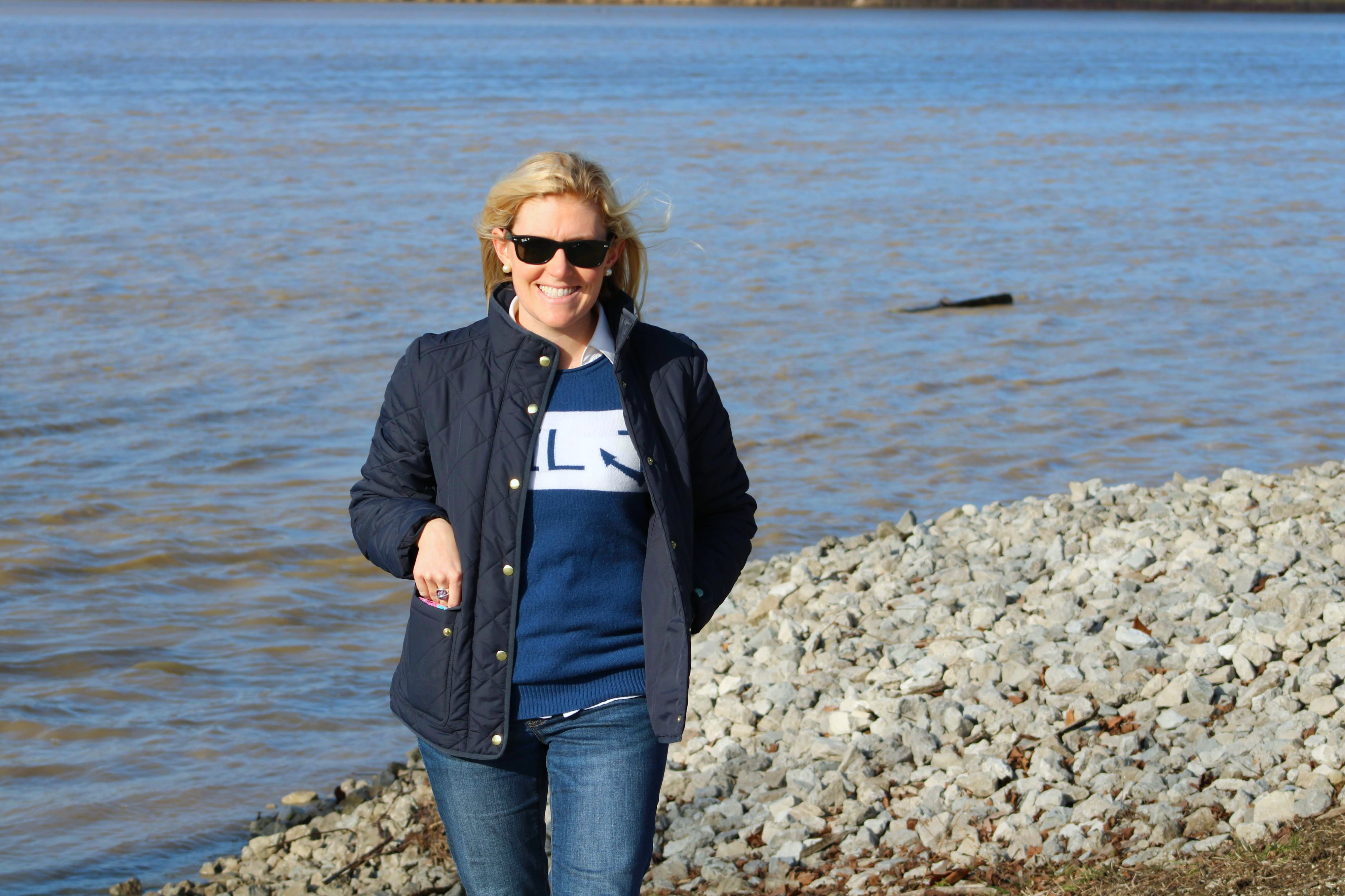 This was the perfect outfit for a coastal jaunt along the river. You can never go wrong with navy and white and a pop of prep.