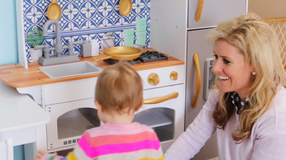 We gave Lilly a kid kitchen set for Christmas and she was also gifted a set of table and chairs. So far she is loving both items and we are having so much fun playing tea, making toast, and learning our food groups.