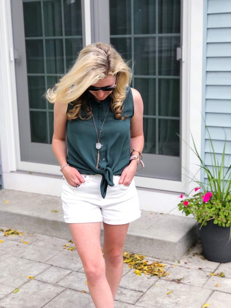 Sleeveless Button Up: A perfectly flowy sleeveless button up is chic and stylish while keeping you cool. It can instantly dressen up any look.