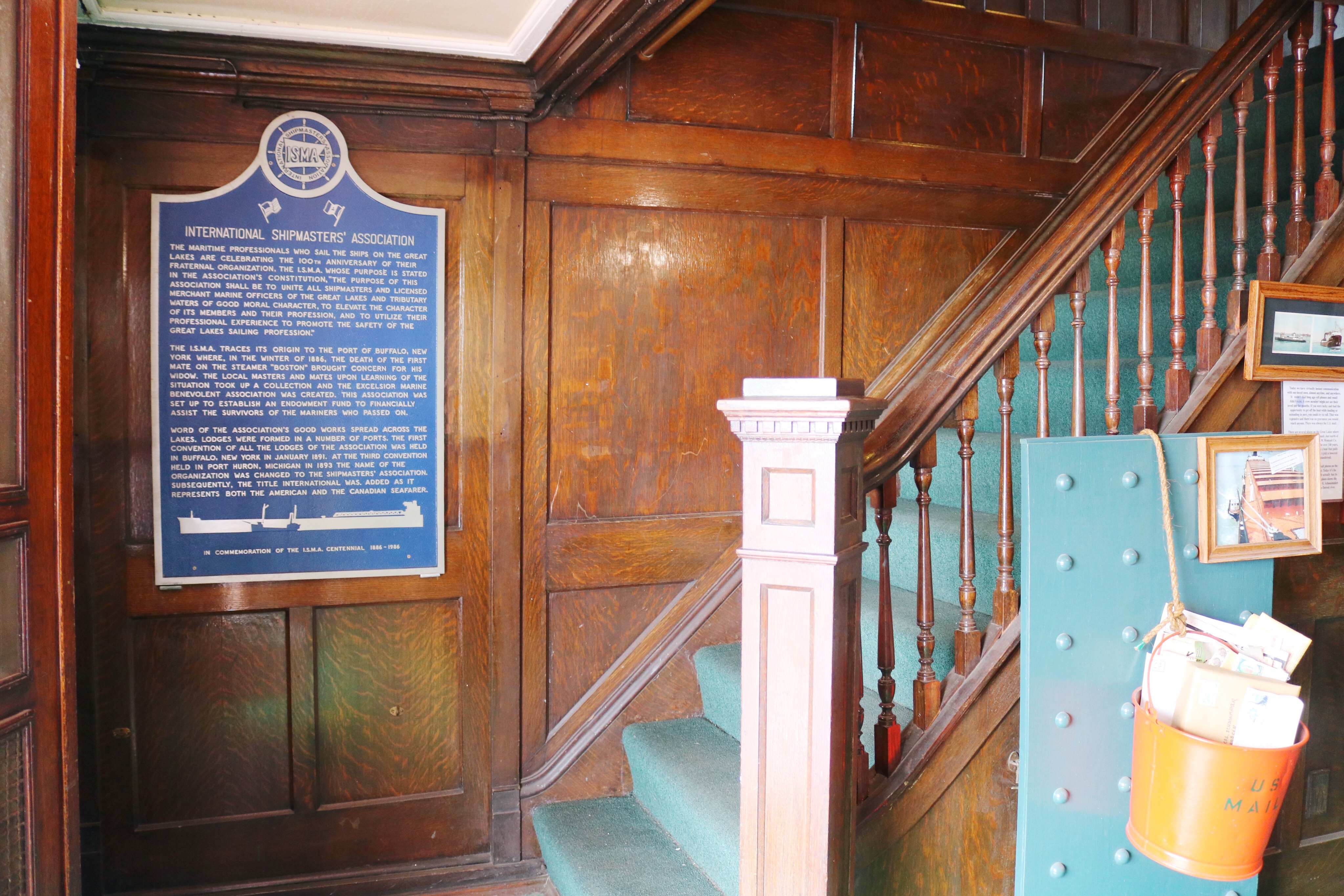 Having completed this side of the ship, we headed back down the deck and entered into the Passenger Hall, which compared to the rest of the boat was quite luxurious! With oak paneling and a grand staircase, one might they think they were on the Titanic (not really, but it was fancy!). Pretty much this entire side of the vessel is the Captain’s area – containing the Captain’s Lounge, Captain’s Offices, and Captain’s Cabin.