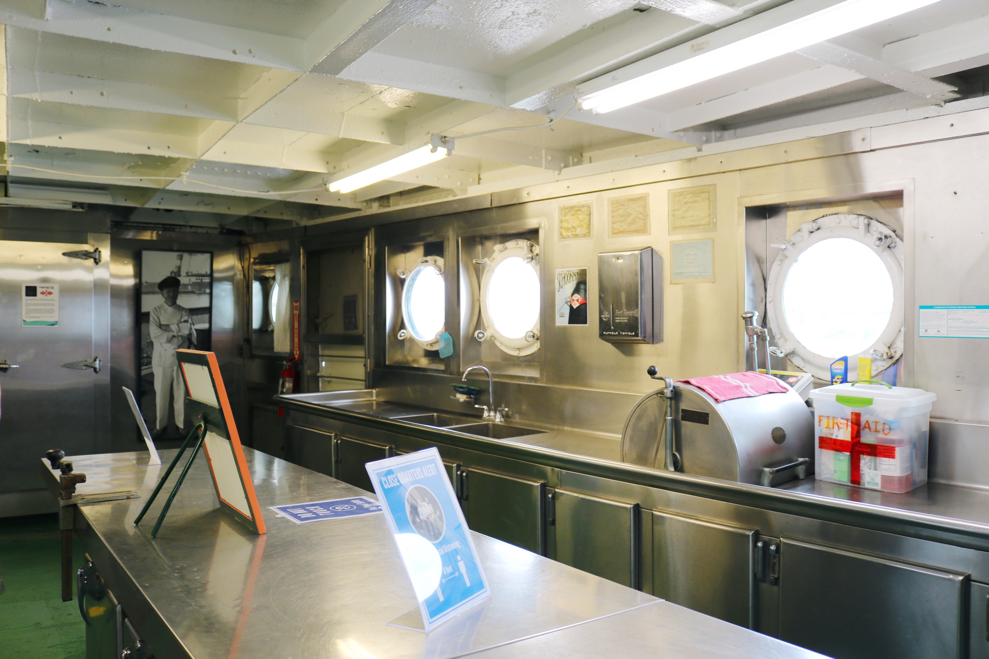 Up next we ventured into the Crew Mess and Kitchen, which was quite spacious in my opinion! Off the kitchen was the Fantail, which just below this area is where the anchor chain locker is that holds a 4100 pound anchor – amazing!! After the Fantail we saw the Engine Room which is quite extraordinary – I for one could never work in this part of the ship though!