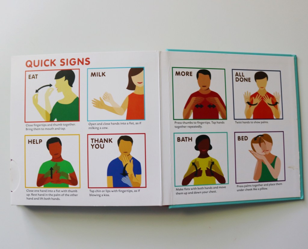 Since babies don’t begin communicating with words until around 18 months or later, it was important for me to teach Lilly sign language. My mom bought this book for us and it’s been amazing! I swear Lilly learned how to communicate “more,” “all done,” and “eat” from this book. Toddlers and babies love interactive books and this one has pull tabs that illustrates each important sign. We have read this book so many times that all the pull tabs have been ripped out (eeek!). It’s one of our most well worn and most well loved books.
