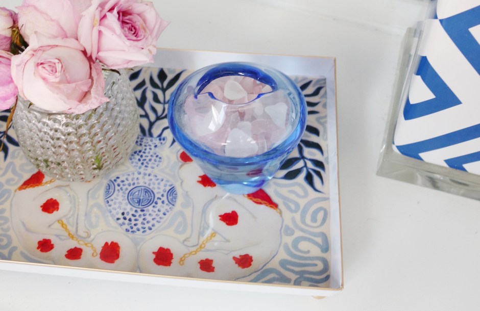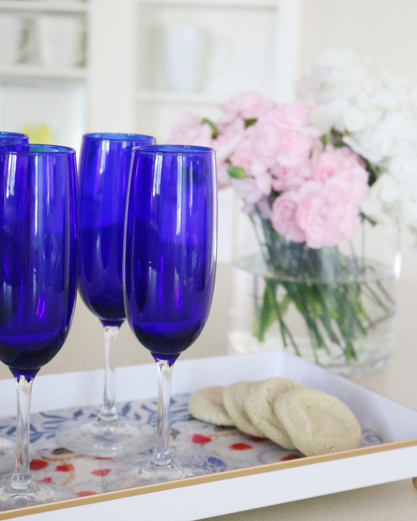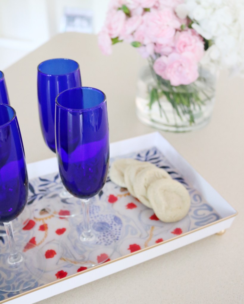 I’m using the tray in a completely different way for the kitchen. This tray is 10”12” and makes for a perfect cheese and cracker tray, a cocktail tray, or even a tray full of your favorite desserts! Use it at your next small gathering, book club event, or even on your deck or poolside while sipping your favorite cocktail.