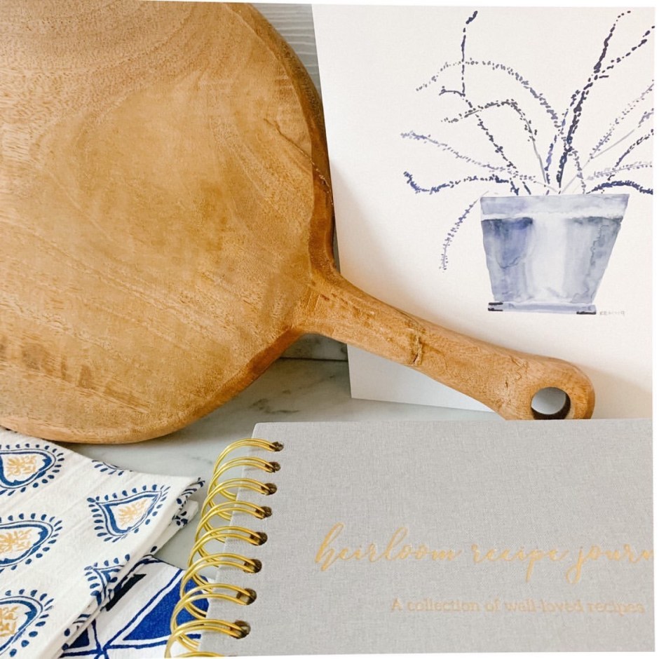 This time of year always makes me crave some sprucing up of my home decor. So what better time to give some lucky followers a few new items to freshen up their kitchen! The winner of the giveaway will receive a cutting board and two towels from Homegirls Boutique, a blue plant art print from Hammer Kate Art, and a recipe journal from J.Sperling Paperie! Head to my Instagram for the rules on how to enter.