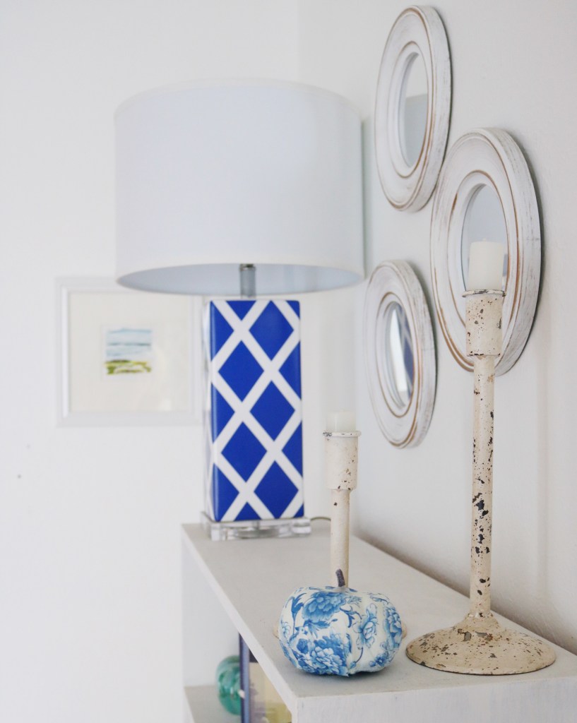 Patterned Pumpkins: This year I made patterned blue and white pumpkins using a little Mod Podge and cocktail napkins and they turned out so cute! A fellow Instagrammer who I follow posted how to do this easy DIY project and you can find it here.