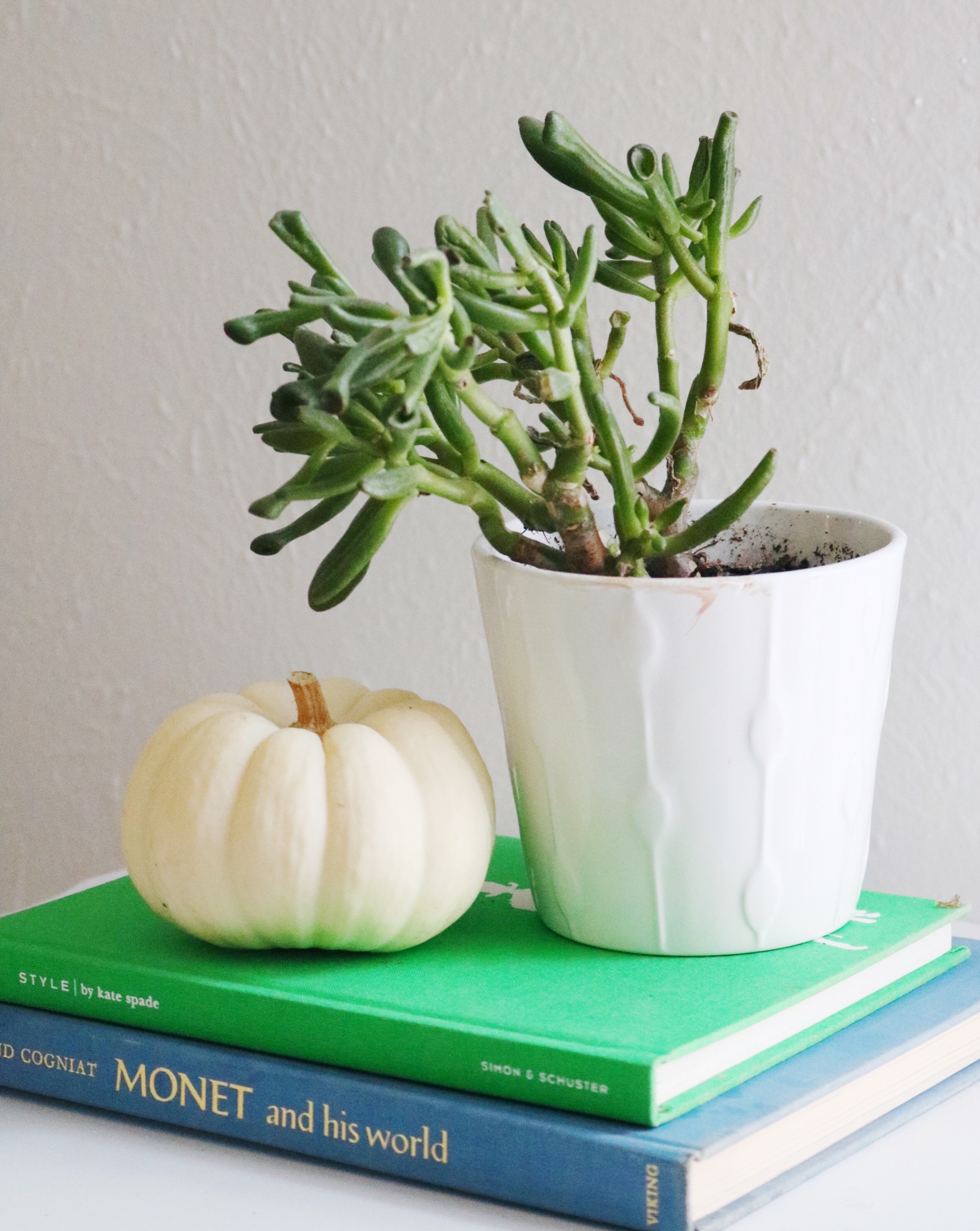 A few other thoughts.  I actually think that seasonal decorations can be expensive and some years I don’t want to spend hundreds of dollars on pumpkins and gourds.  My mom always tells me to add a few new pieces to our collection each year and eventually we will have enough seasonal decor to fill the house.   We’ve been in our house for four years now and I have enough fall decor to decorate our living room and dining room (the two rooms we use the least haha!).