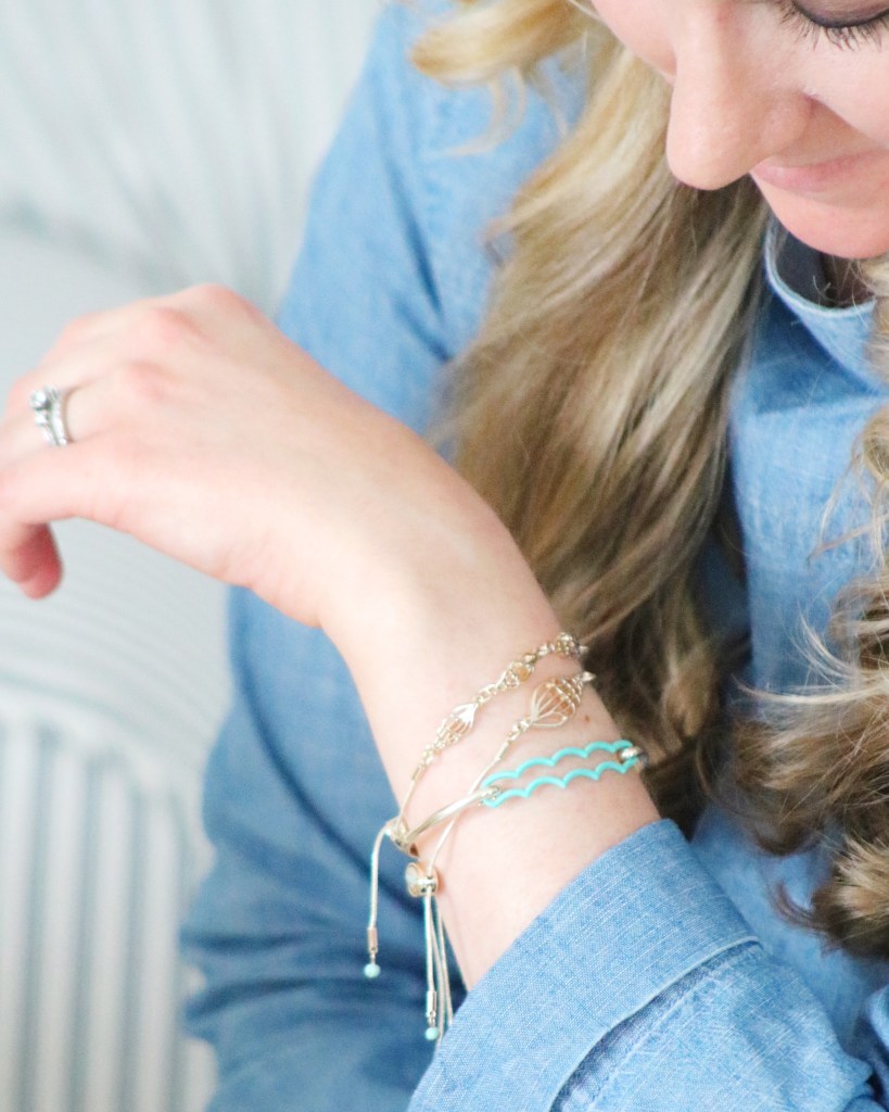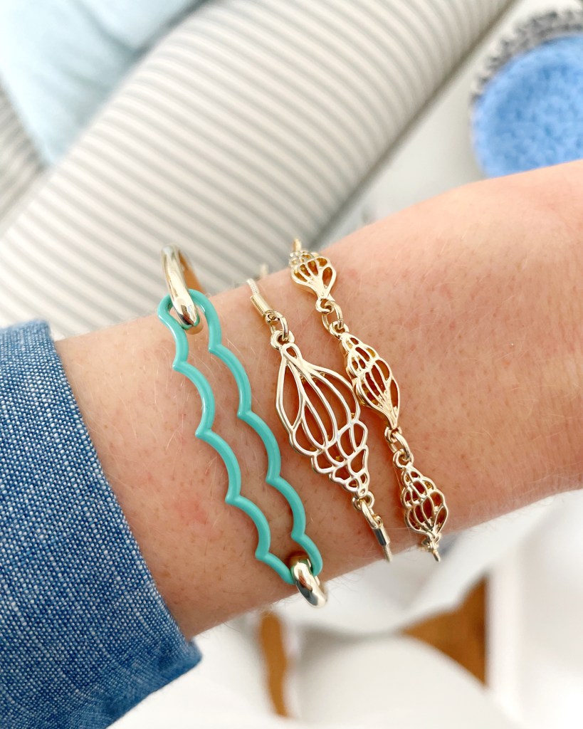 I also find the design of the Marco Island slider bracelets so beautiful. The hand drawn tulip shell accent is so pretty! I love to style these slider bracelets with the ocean wave bracelet. They are equally gorgeous styled separately though – they are just so elegant and timeless. Plus these bracelets are designed to be easily adjustable which I love!