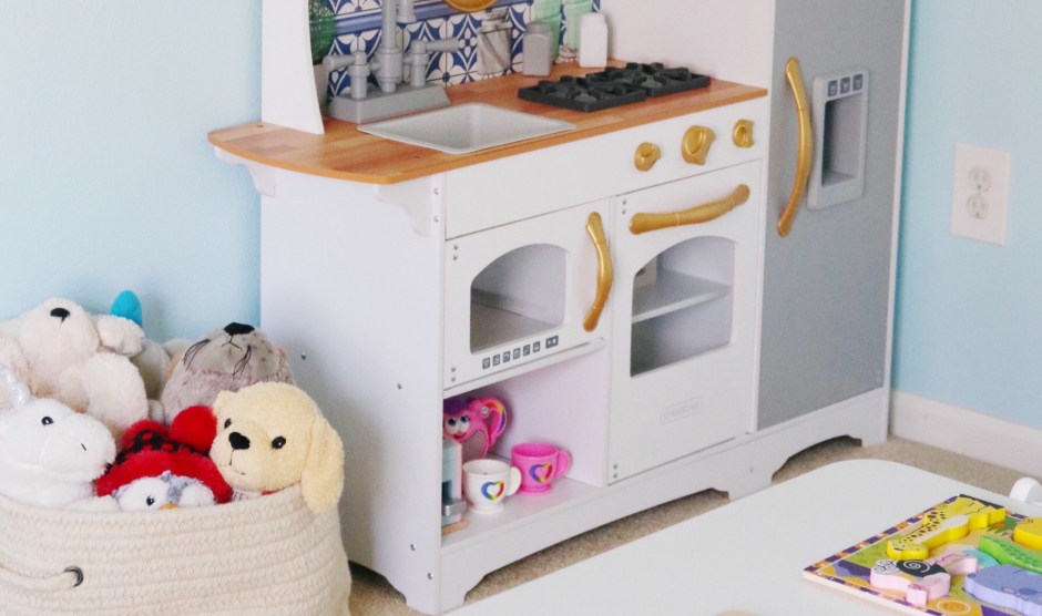 Fortunately we have a designated playroom in our house. Keeping her toys, books, and stuffed animals all in one area of the house certainly helps with keeping the rest of the house organized. And it helps that this room is separate from the rest of the house (it’s right off of our entrance from the garage and there is a bathroom connected to it. I think it’s technically a downstairs master, but we use it as the playroom). Even if you don’t have a playroom, you can set aside a space in your house for the kiddo’s toys (use those baskets!) and it will definitely help with keeping things tidy.