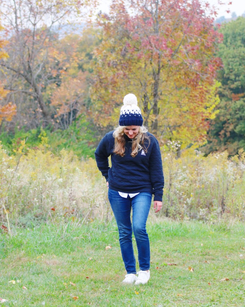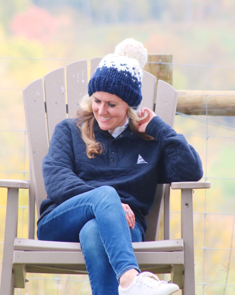 Of all my Erie and Anchor pieces, the navy blue quilted pullover is the one I receive the most compliments on. People always comment on how cute the style is – especially the white sailboat detail. Like all my E&A pieces, this pullover is warm and so comfortable. If you own a boat or live a coastal life, this pullover is going to be your go-to for cooler evenings on the lake or beach days in the fall. It’s the perfect transition piece. (Note: The bottom band does fit snug, so I recommend sizing up).